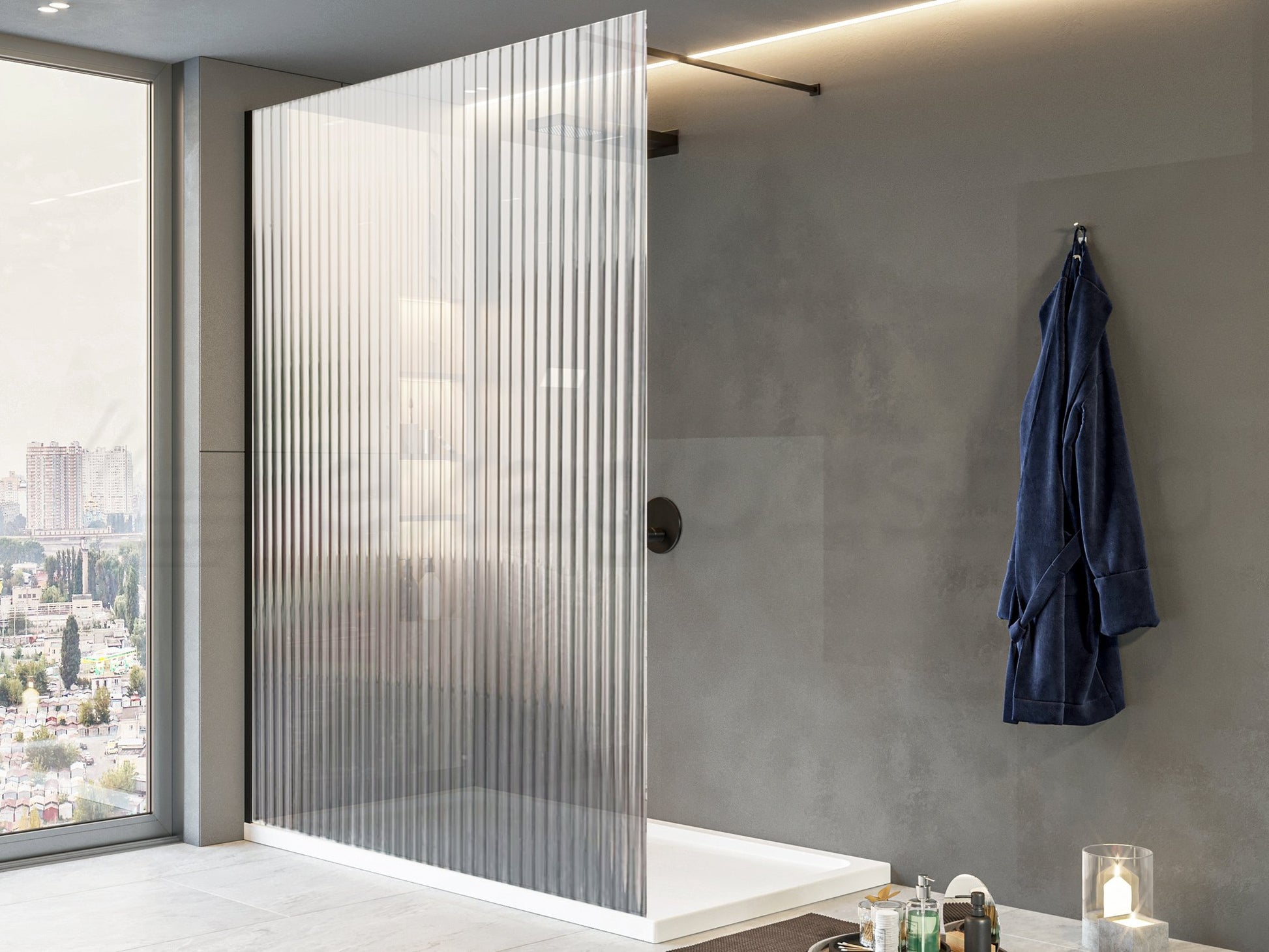 Walk in parete doccia fissa 120 cm H 200 spessore 8 mm in cristallo fluted scanalato profili nero Genio