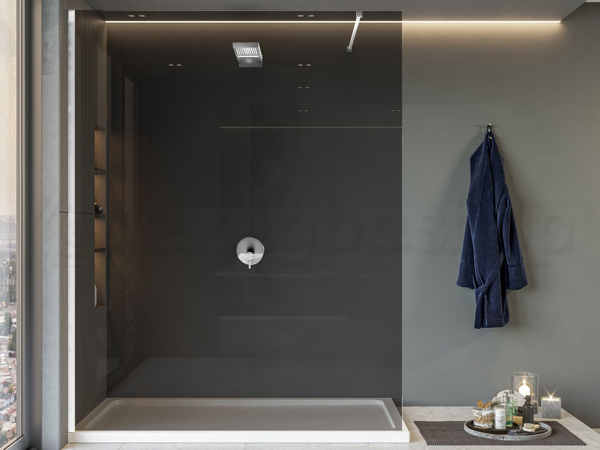 La parete doccia fissa Genio unisce l'estetica raffinata del cristallo fume' con la solidità dello spessore di 8 mm, garantendo un'esperienza di lusso e comfort nel bagno. La sua struttura resistente e affidabile assicura una durata prolungata nel tempo, richiedendo una manutenzione minima e garantendo prestazioni di alto livello.