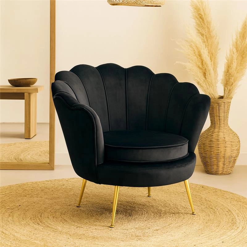 Water Lily Poltrona design Glamour con gambe in acciaio dorato e tessuto imbottito nero